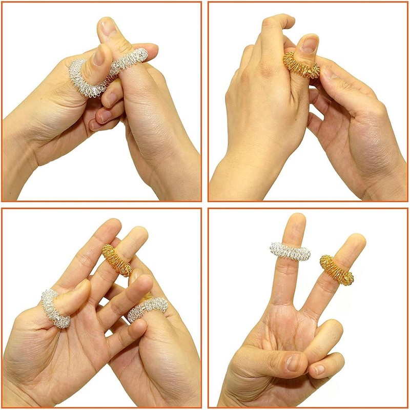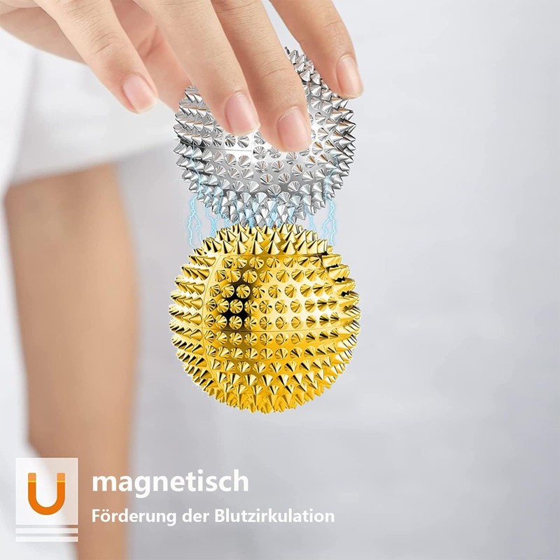 2 Hedgehog Balls Gold + 2 Hedgehog Balls Silver + 10 Acupressure Rings - Skills Borderline Set with Skill Ball Metal Skill Ring - Acupressure Ball Hedgehog Balls Small 3 cm Acupressure Ring Skills Set