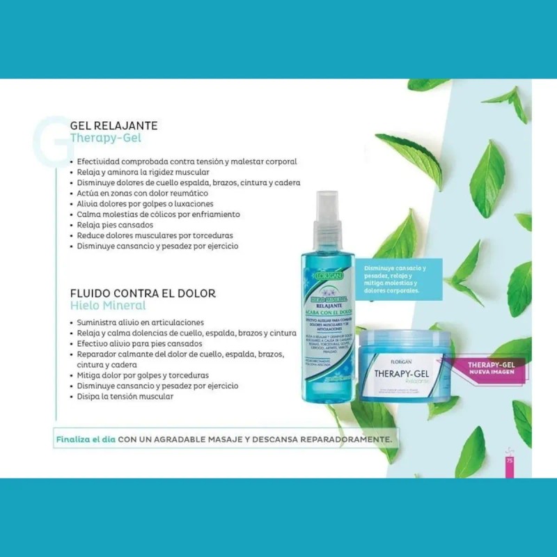 Therapy-Gel: un gel de textura ligera que contiene mentol, alcanfor y glicerina, tres ingredientes naturales que tienen propiedades analgésicas, antiinflamatorias y antiespasmódicas. Es ideal para aliviar el dolor muscular, los golpes, las contracturas y la inflamación.