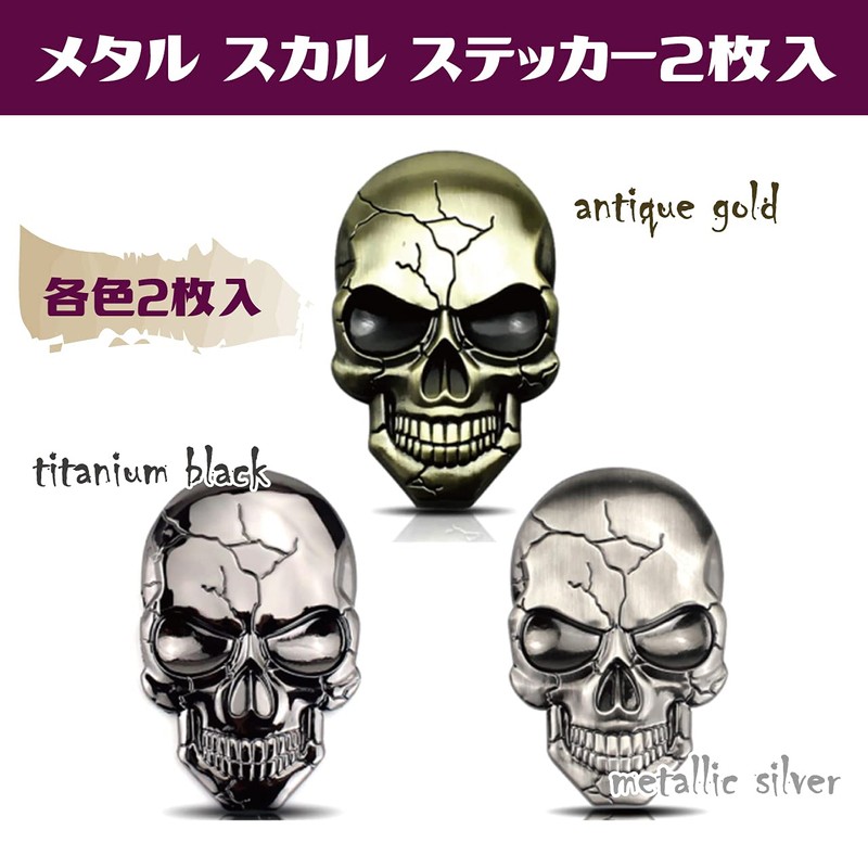 - Includes: Set of 2 skulls stickers (silver)