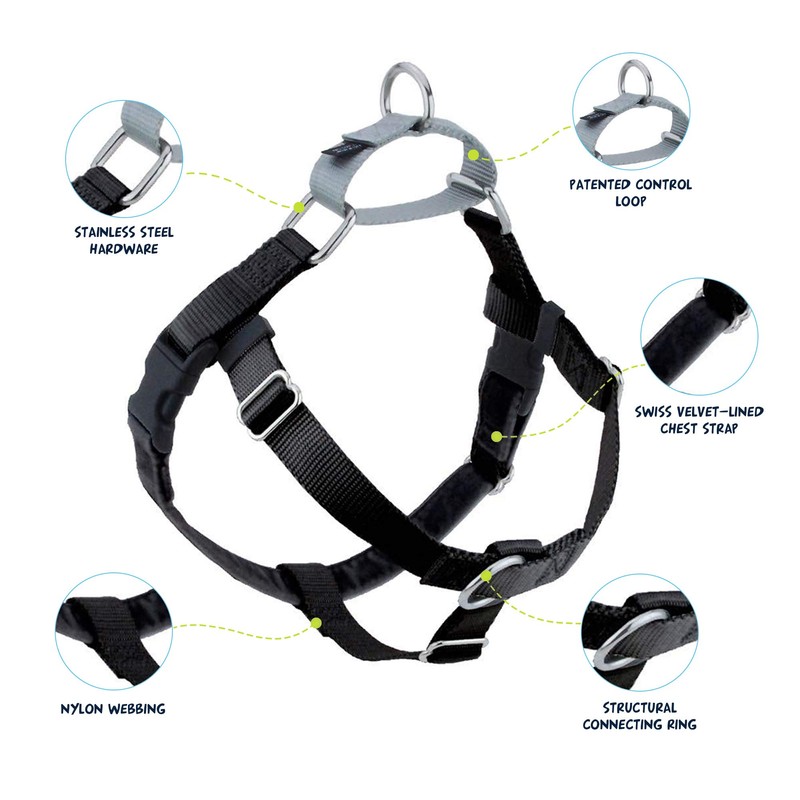 2 Hounds Design Freedom No Pull Dog Harness | Comfortable Control for Easy Walking | Adjustable Dog Harness | Small, Medium & Large Dogs | Made in USA | Solid Colors | 1" LG Black