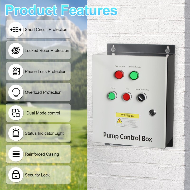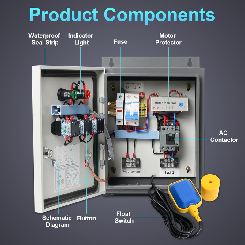 - User-friendly: The pump control box features organized internal wiring and clear labeling; It includes an instruction manual and a float switch counterweight; The simple wiring method allows for quick, correct connections by tapping the metal round holes
