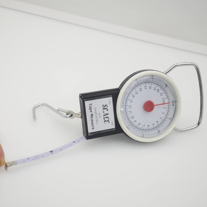 2 in 1 50lb Manual Luggage Weighing Scale, 1M Measuring Tape, Portable Weight Scale for Suitcase, Suitable for Home and Travel Needs, Compact Handheld Hook Weight Scale