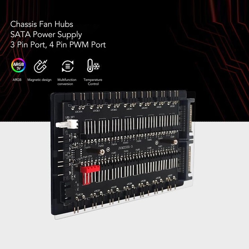 2 in 1 ARGB PWM Fan Hub, 16 Way ARGB PWM Fan Hub, SATA Interface Power Supply Magnetic 4Pin PWM 3Pin ARGB Case Fan Hub with Acrylic Case