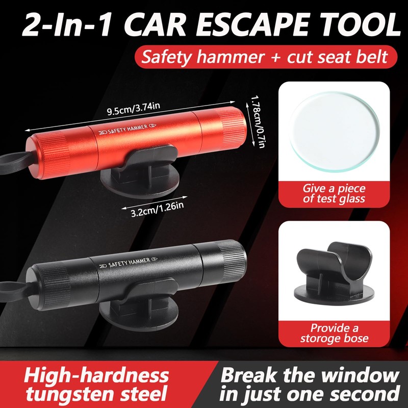 - 【2 in 1 Gurtschneider Notfallhammer】 Kombiniert Notfallhammer und Sicherheitsgurtschneider in einem Gerät (inkl. 2 Testgläser zur Übung), ermöglicht ein sofortiges Zerschlagen von Fensterscheiben im Notfall und schnelles Lösen von verklemmten Gurten für eine reibungslose Flucht