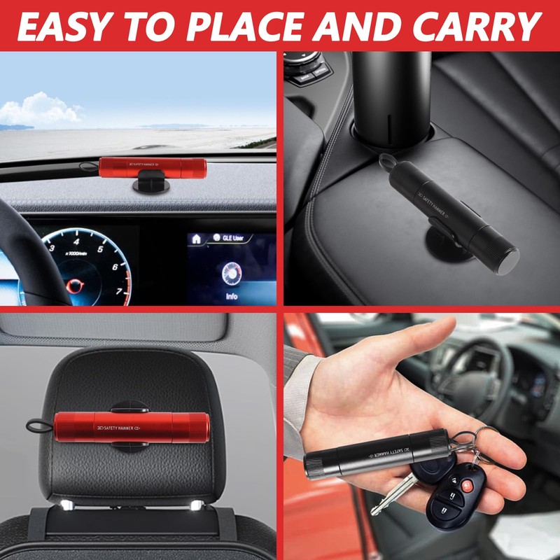 - 【Weit verbreitet】 Unser notfallhammer Egal ob Erwachsener oder Kind, die intuitive Bedienung ermöglicht es jedem, Scheiben zu durchschlagen oder Gurte zu durchtrennen, um schnell aus der Gefahrzone zu entkommen