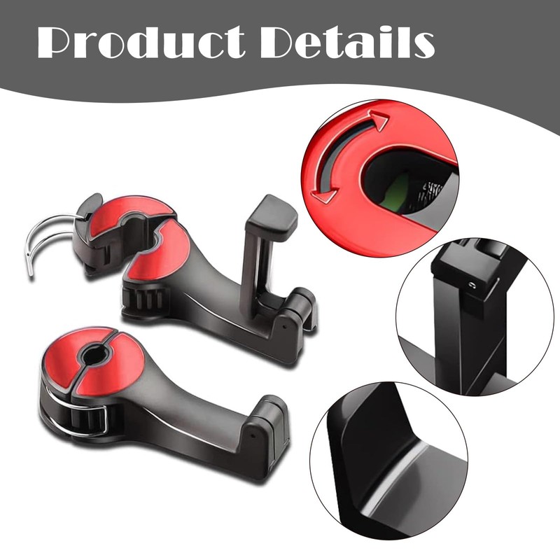 • 360° Rotatable for Ultimate Flexibility – The 360° rotatable feature allows you to adjust the hook's angle to fit your space, offering flexibility for both the front and back seats, ensuring easy access to your items no matter where you're sitting.