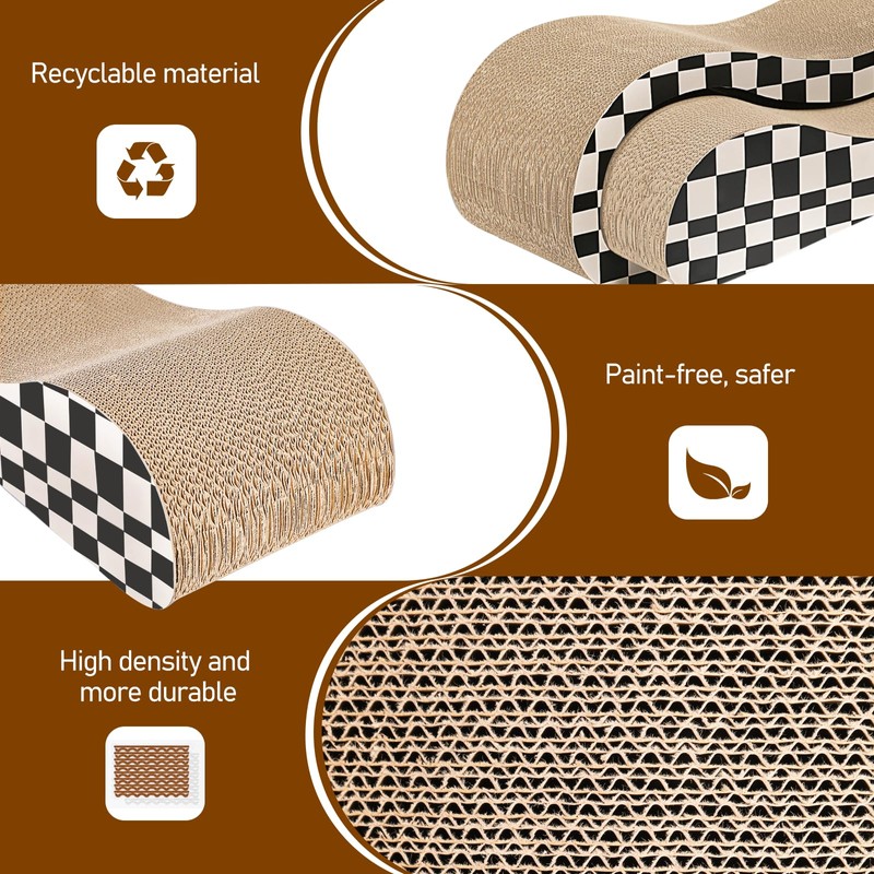 2 in 1 Cat Scratcher Cardboard Lounge Bed, Cat Scratching Post, Durable Board Pads Prevents Furniture Damage,Large,Checkerboard