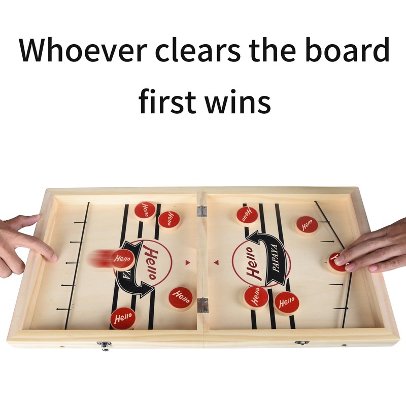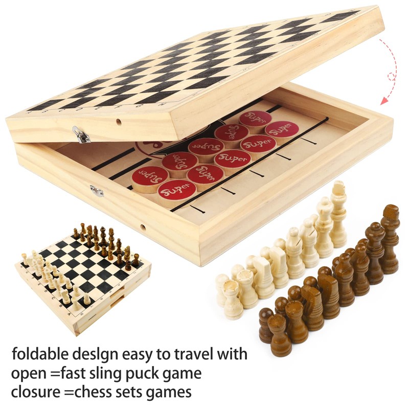 2 in 1 Chess Board or Fast Sling Puck Game,Wooden Hockey Game, Foosball Table Winner Game,Desktop Battle Slingshot Game,Parent-Child Interaction Family Games Toys