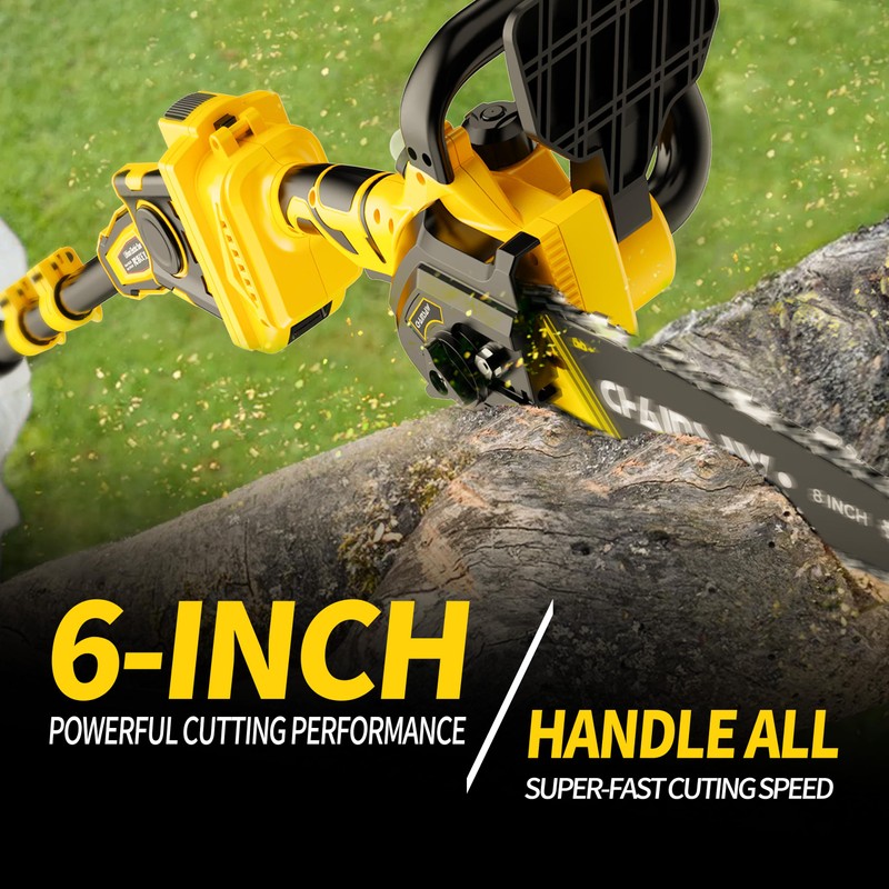 • 【Upgrade Cordless Rotatable Pole Saw And 8-Inch Chainsaw Combination】Has made a new upgrade to the 8-inch brushless chainsaw with an additional rotatable, multi-angle cutting extension bar (which can be installed and used at will according to the actual situation). You can either use the chainsaw alone to trim low branches, or install the extension pole to handle overhead work. One tool has two uses to meet the needs of users in different work scenarios.