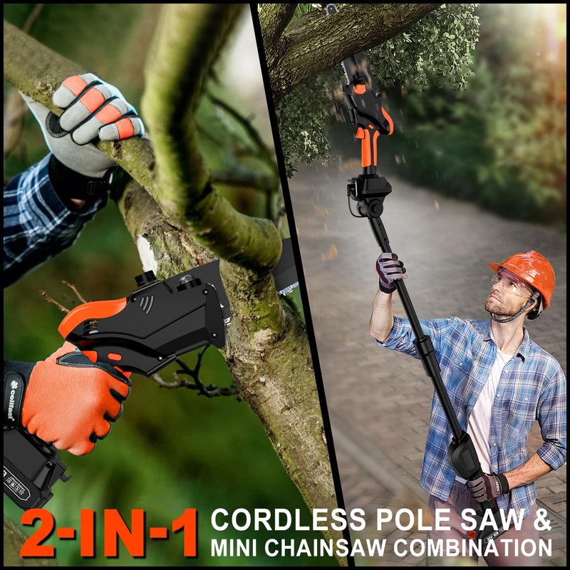 2-IN-1 Cordless Pole Saw & 8" Mini Chainsaw Battery Powered, Electric Pole Sa...