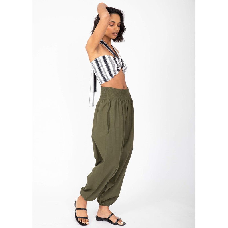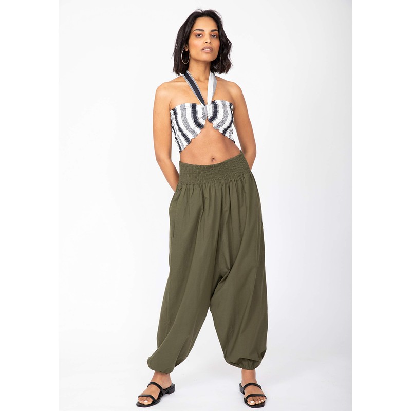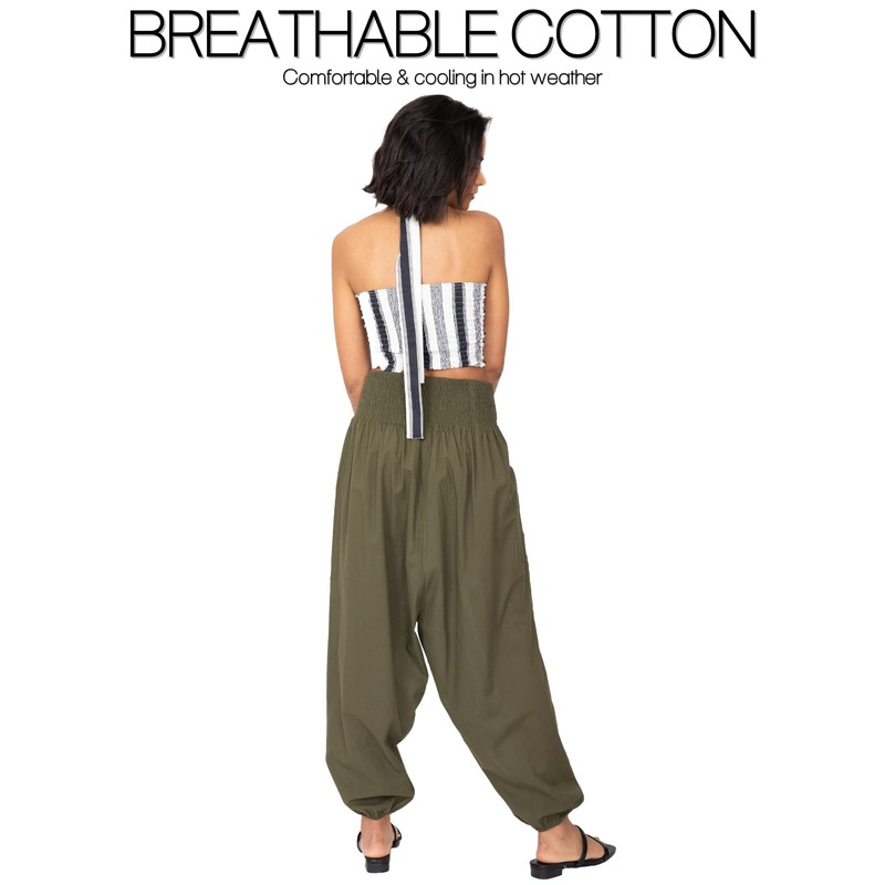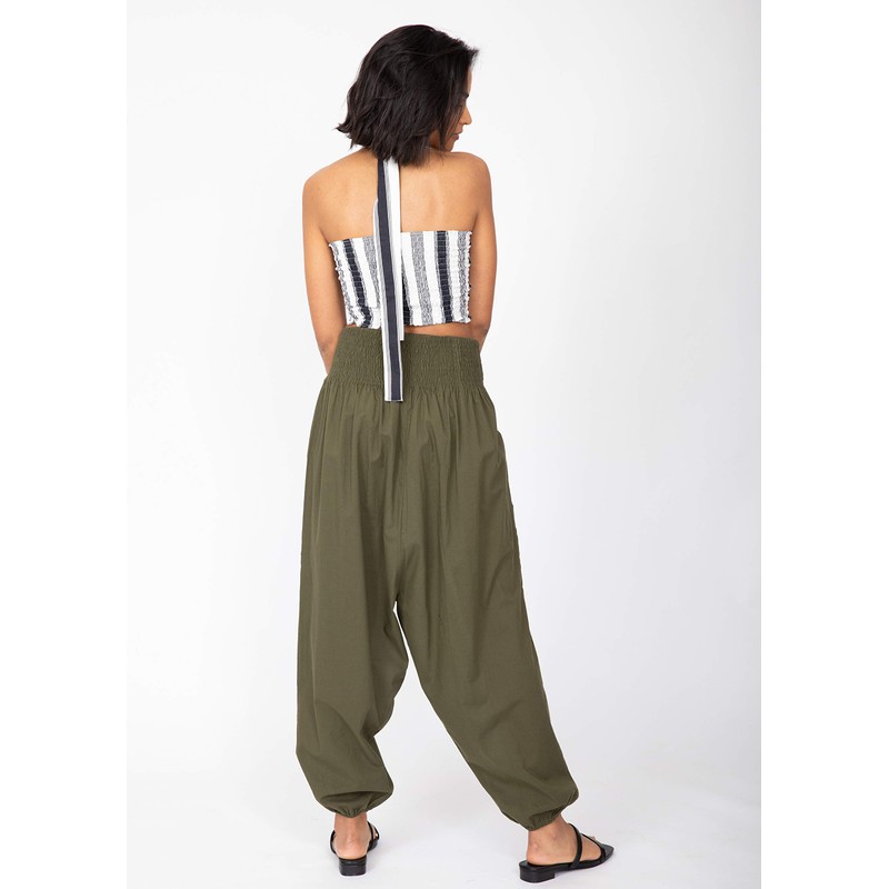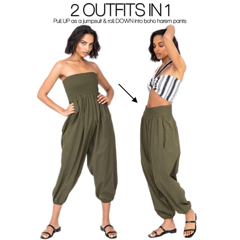 2 in 1 Cotton Harem Trouser or Bandeau Jumpsuit Khaki Long
