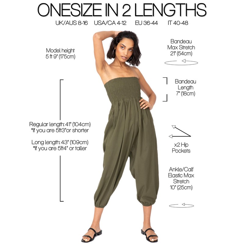 - Wear as harem trousers or as a capri jumpsuit