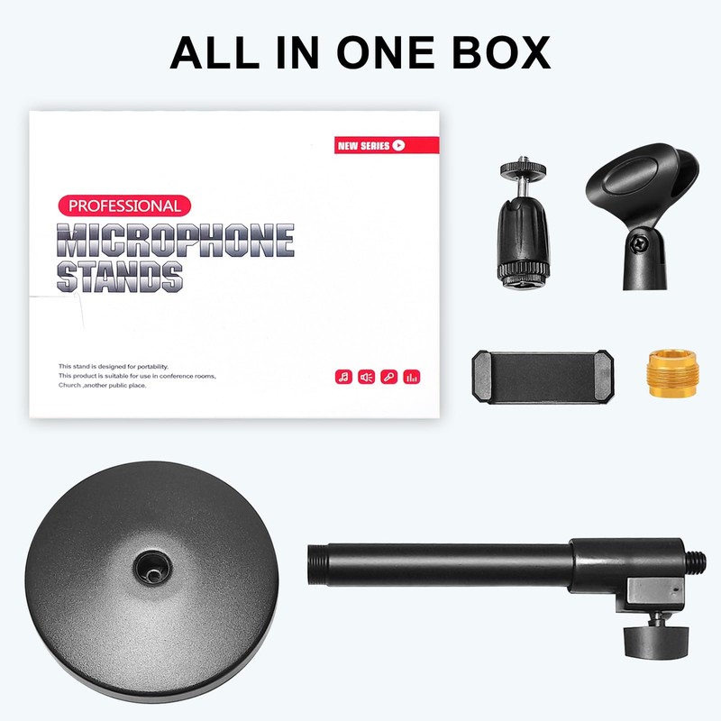 - [Multifunction Mic Stand] Not just a desk microphone stand, it can also be used as a cell phone stand by replacing the clip( included). The microphone stand with a 3/8" to 5/8" adapter can support many types of microphones . As a cellphone stand, suitable for iPhone and Android smart phones from all 4-7".