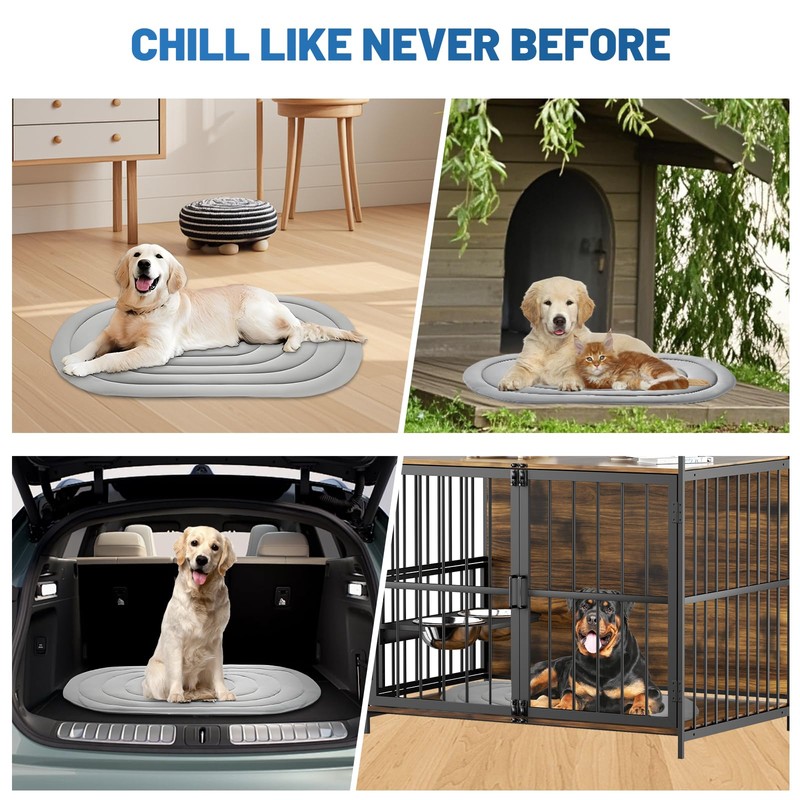 - VERSATILE USES : Designed for flexible use, this dog cooling pad is suitable for floors, sofas, car seats, pet crates, beds or dog houses, making it ideal for indoor use, outdoor areas, or travel. Beyond pet use, it doubles as a practical pillow, seat cushion or even laptop cooling mat for humans.