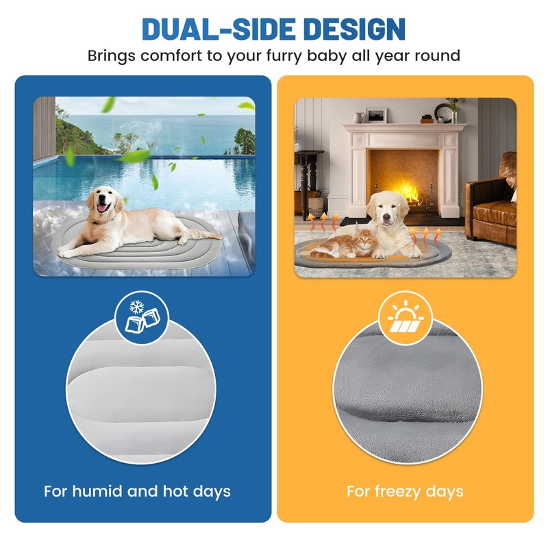 - WINTER-READY SIDE : The other side of our cool mat features thick, cozy flannel that keeps your pet perfectly warm when the weather turns cold. The soft fabric holds in body heat, while special inner layers block chilly air rising from floors - whether it's winter tiles, drafty hardwood, or cold balcony concrete.