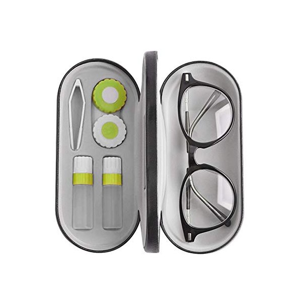 2 in 1 Double Use Portable Glasses Case Set Compatible with Contact Lens and Eyeglasses Case
