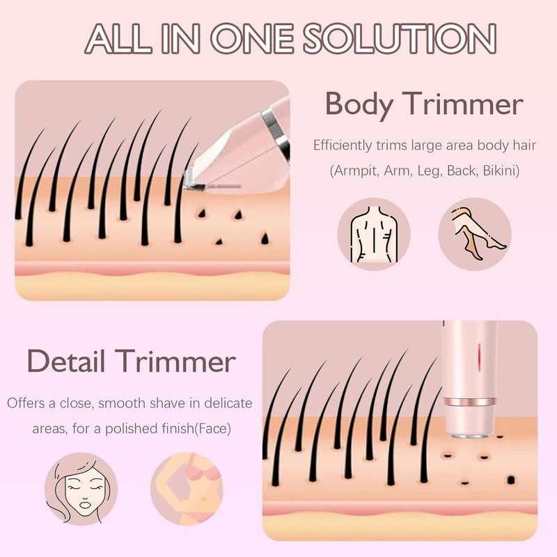 2 in 1 Electric Painless Hair Removal Razor, Hair Removal Tool, 1 Box Waterproof Body Hair Remover for Face & Lower Legs, Cordless Bikini Trimmer with Detachable Head