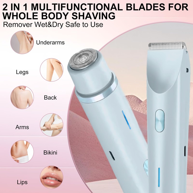 2-in-1 Elektrischer Intimrasierer für Frauen, Doppelkopf Rasierer Damen Intimbereich, Ipx7 Waterproof, Wiederaufladbarer, Nass- Und Trockenanwendung für Verschiedene Körperteile(Blau)