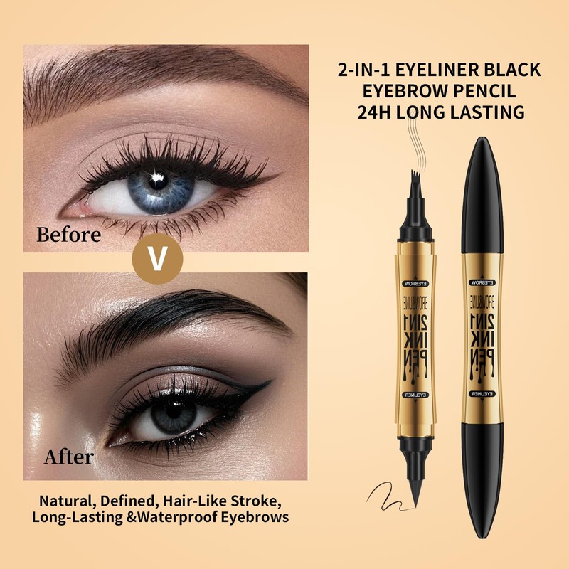 - 2-In-1 Eyeliner: The eyebrow pencil has a dual - ended design (Black Eyeliner and Black Eyebrow Pencil),adored by novices and experts alike with 4 micro-fork tips brow pen simplifies outlining and filling your brows with lifelike accuracy,layering strokes adds depth and dimension,delivering crisp,authentic looking eyebrows in record time