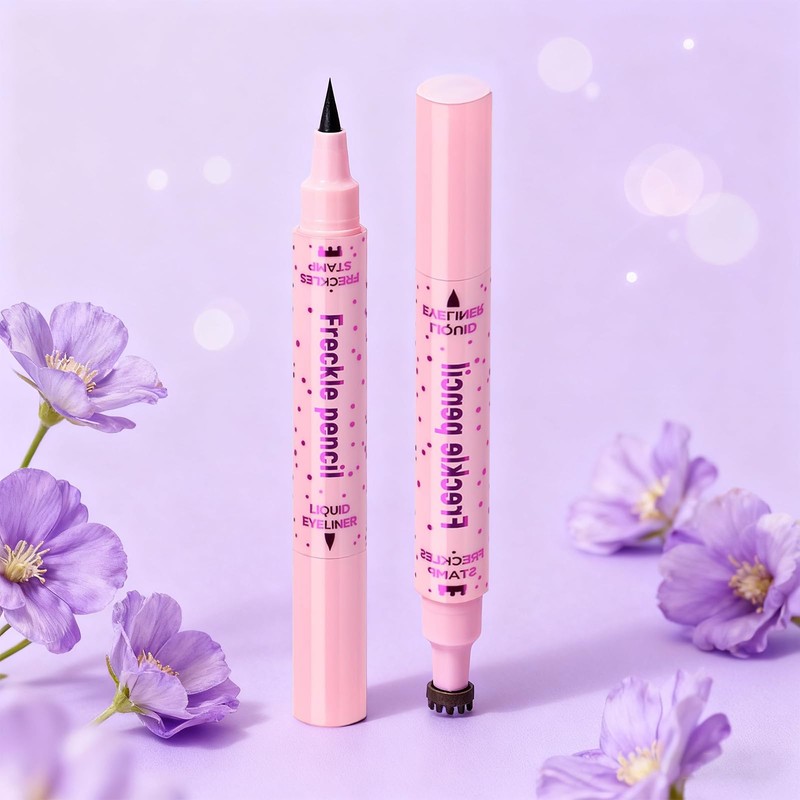 - 【2 in 1 Design】 Our dual-ended pen consists of a freckle stamp and liquid black eyeliner, It can achieve a natural and realistic freckle effect and precise eyeliner makeup in one go, simplifying your makeup routine.