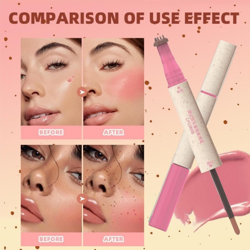 - Long-Lasting Makeup:Our freckle stamps are specially formulated with waterproof film-forming agents,enabling the makeup to quickly form a film and not smudge easily when exposed to water.After using our blush liquids,even if you sweat,the color of the makeup on your face can remain stable.Whether it's freckle marks or blush smudging,they can all remain clear.Using our freckle pens will not cause fading or clumping,reducing the frequency of touch-ups