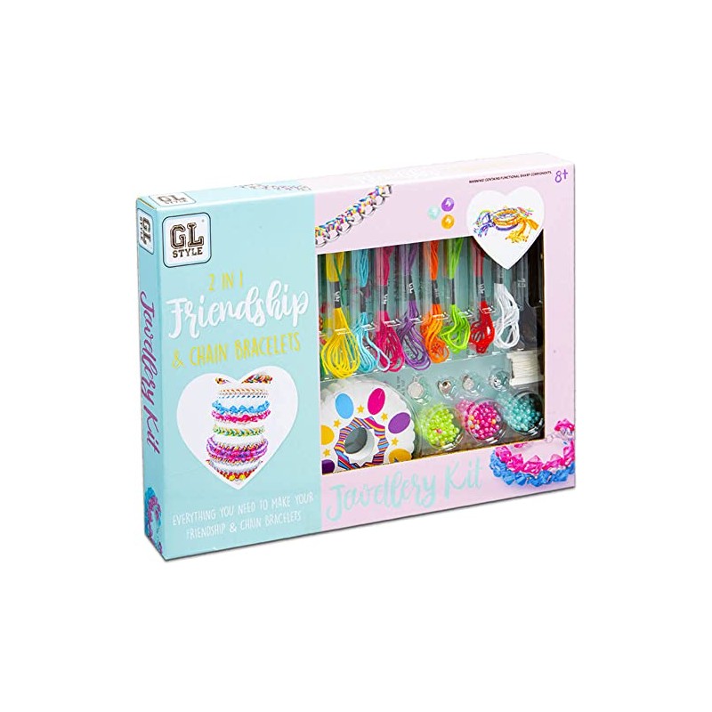 Design your own friendship bracelets to share with all your friends! Show off your creative skills and create your own bracelets with everything you need included in this kit. Product Information:• 2-in-1 Friendship and Chain Bracelet Kit• Jewellery Kit• GL Style• Ages: 8+ Warning: This product contains small parts. Not suitable for children under 3 years - choking hazard.