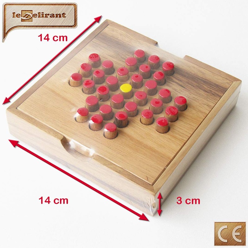 2 in 1 Games Solitaire + Fox and Geese for 1 to 2 Players - Solid Wood Board Game - French Brand Le Délirant® - CE - Travel Game with Lockable Tray