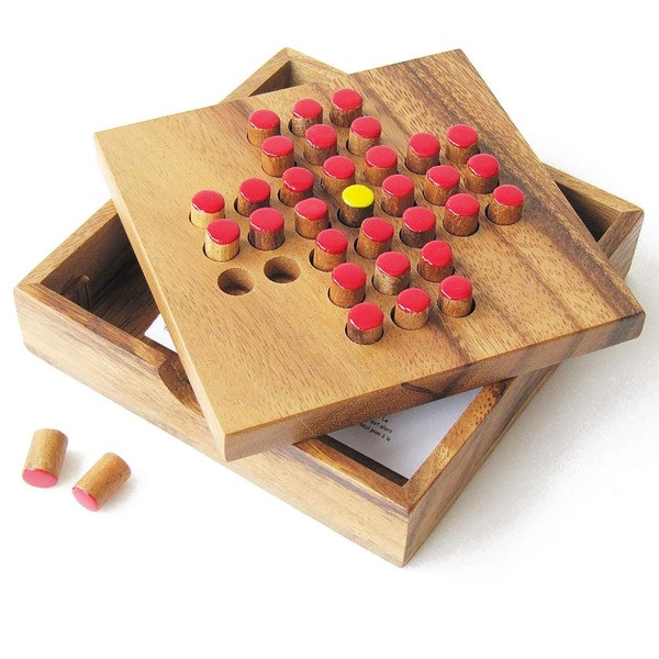 The great classic solitaire game made of solid wood, 2-in-1 games, also includes the game fox and geese as a strategic variant, which is played with 2 players.