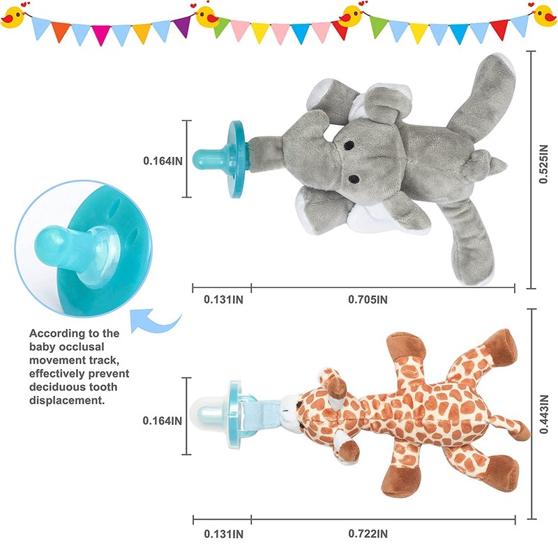 - 🍼 Plush Animal Toy Pacifier: 1*Safe Silicone Baby Pacifier 1* Plush animal Toy, dolls and pacifiers are detachable for easy cleaning