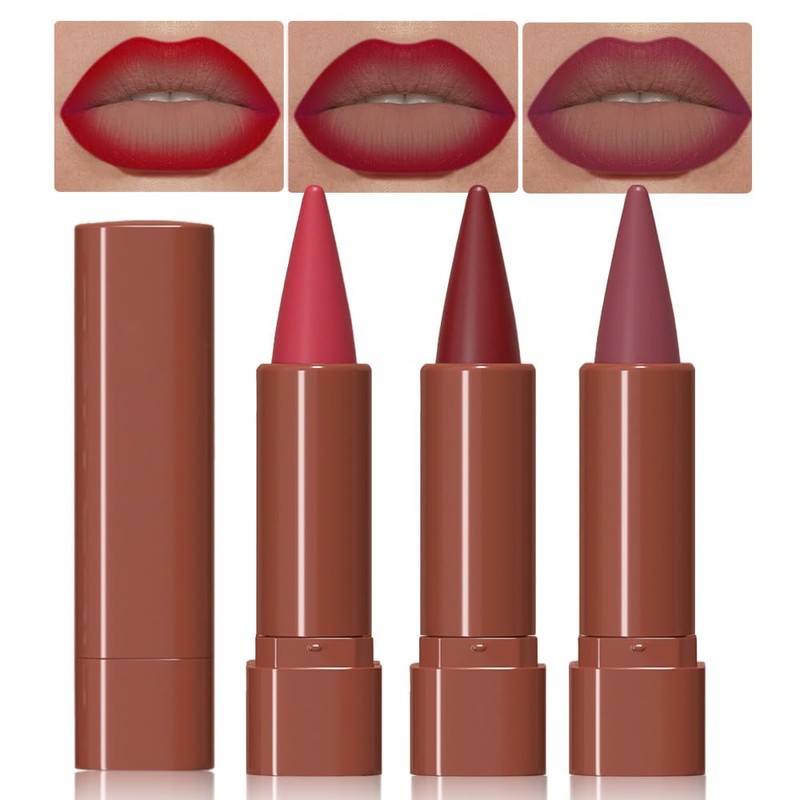 2-in-1 Gradient Lip Liner and Lipstick Lip Combo Set, Matte Lipstick Crayon Lip Liner pencil, High Pigmented Long Lasting Waterproof Smudge Proof Lip Liner (06#+07#+09#, 3 Count (Pack of 3))