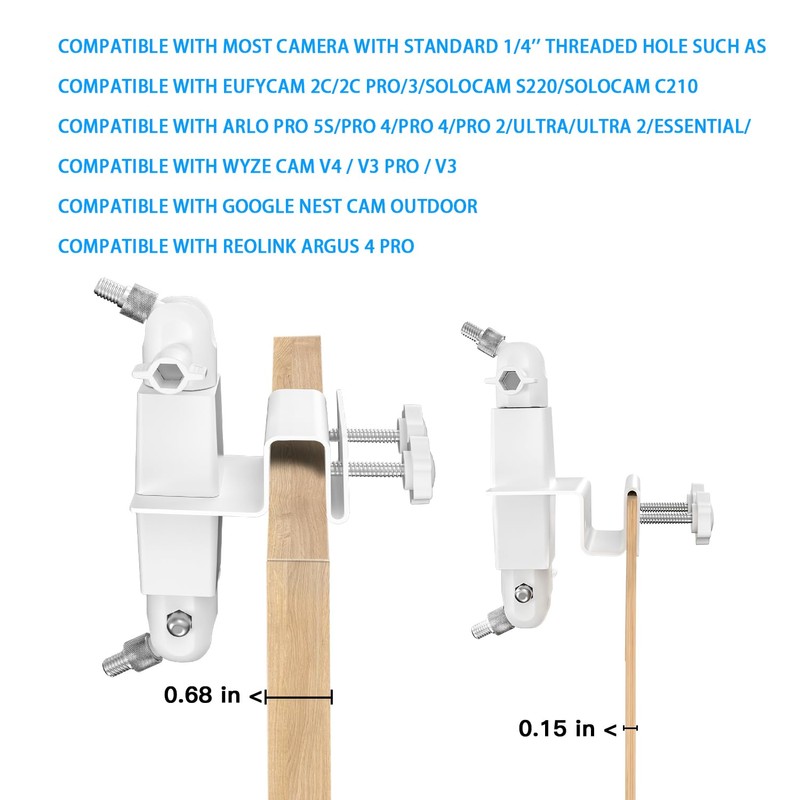 - 【2 in 1 Camera Solar Panel Gutter Mount】Compatible with most camera and solar panel with 1/4"-20 threaded post. Designed for mounting both on the gutter at the same time(Compatible models listed in description)