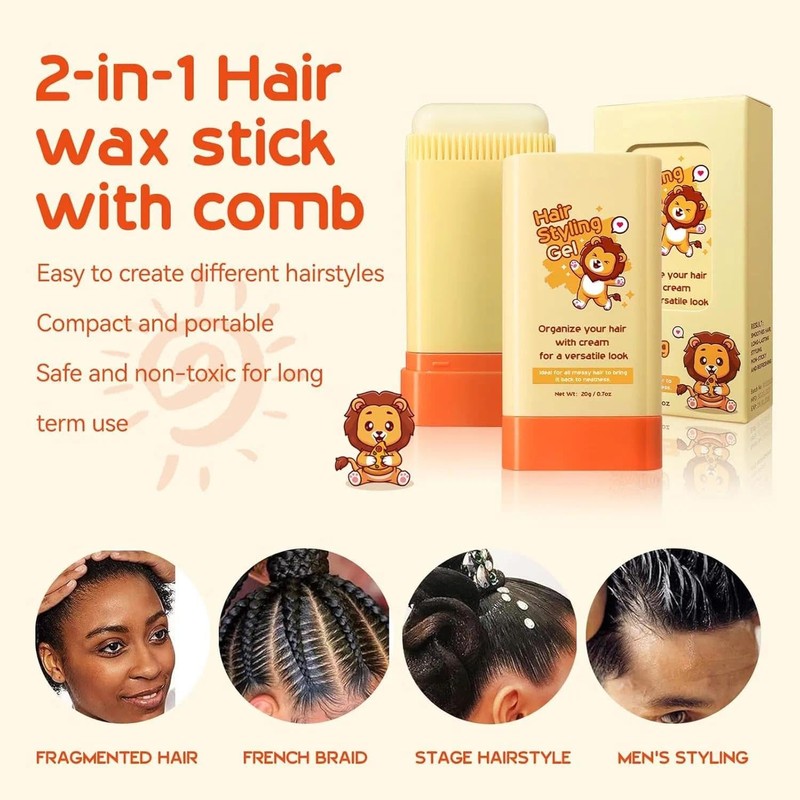 2-in-1 Hair Wax Stick for Kids with Built-in Comb - Slick, Moisturizing, Non-...