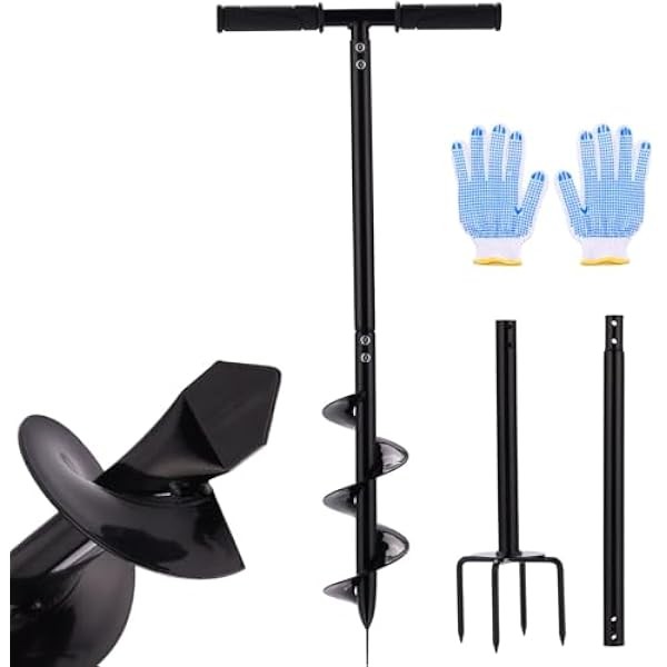 2 in 1 Hand Auger Spiral Drill for Planting, 44.5inch Post Hole Digger Manual Auger for Fence Posts, Sand, Bulb, Seedlings, Tree, Mail Box, Manual Garden Spiral Hole Digging Drill with Non-Slip.
