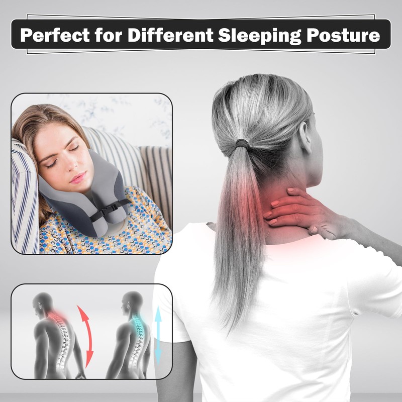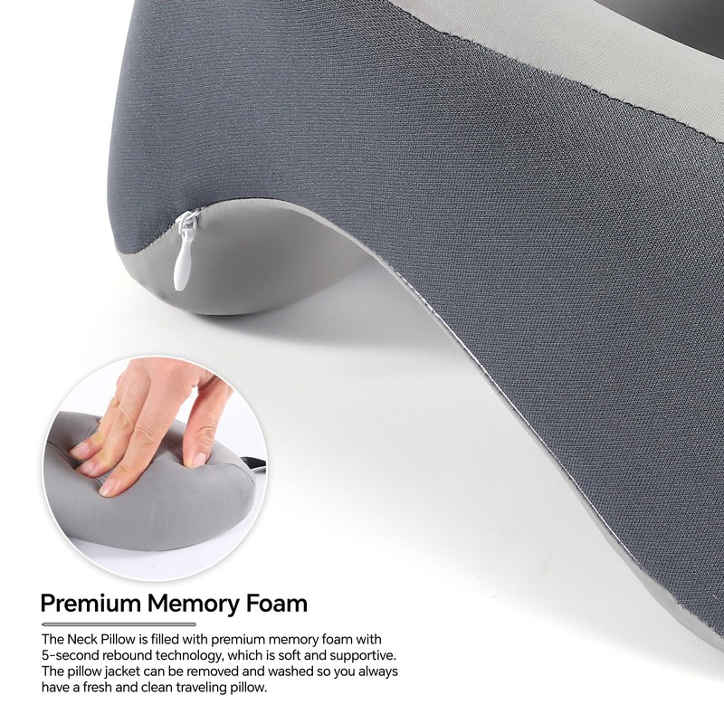 - HIGH-QUALITY MEMORY FOAM NECK PILLOW: Our 2-in-1 neck pillow is crafted from premium memory foam with 5-second rebound technology. It relieves pain at pressure points, distributes pressure evenly across the head, neck, and shoulders, providing unparalleled relaxation and full neck support. Perfect for airplane travel, the pillow's curved design conforms to your neck's shape, offering personalized support.