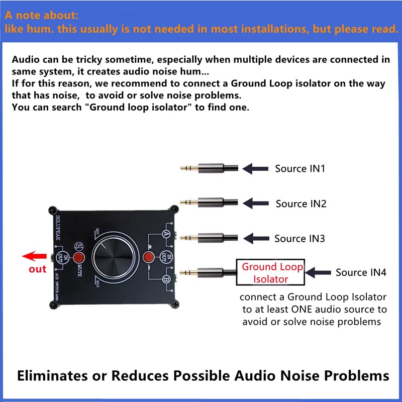 - Plug and play, no power supply necessary; Won't affect sound quality.Note: Only one audio is output at a time (you can switch between two audios)