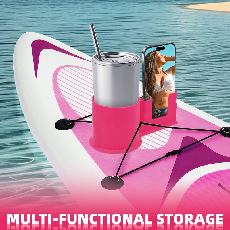 2 in 1 Paddle Board Cup Holder,Stand up Paddleboard Cup Holder,Paddle Board Accessories for Storing Mobile Phones, Water Cups, Fishing Tools (Pink)