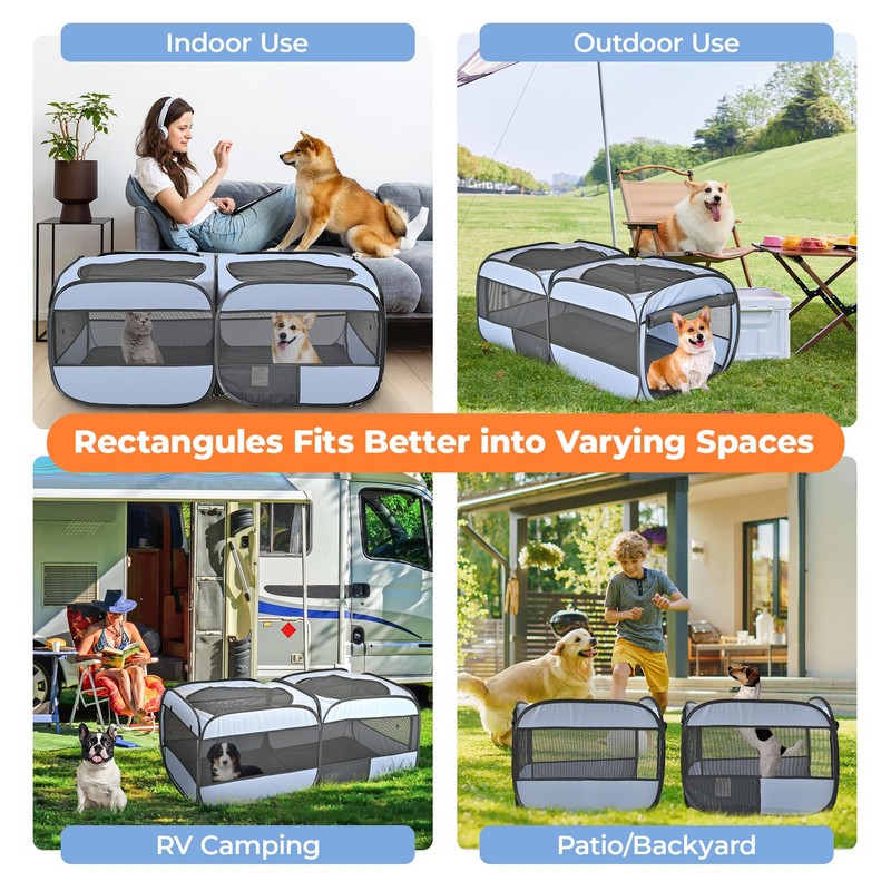 - ๐๐๐ง๐ง๐จ๐ฏ๐๐ญ๐ข๐ฏ๐ ๐๐๐ญ๐๐๐ก๐๐๐ฅ๐ ๐๐๐ฌ๐ข๐ ๐ง โ The EighteenTek puppy playpen is thoughtfully detachable designed, can be separated into 2 individual units by simply zipping up the additional doors, Perfect for multi-pet households or giving pets their own private area. This versatile design adapts to various needs such as training, playing, or isolating pets when necessary. Zipping the two playpens together for a shared sapcious play area or a accessible litter/feeding zone.