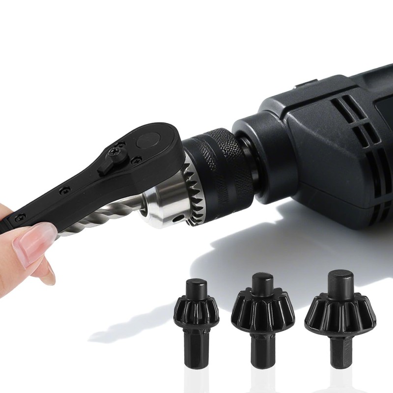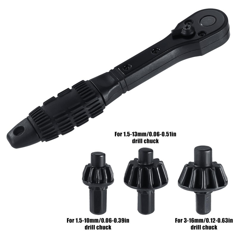 2-in-1 Ratchet Drill Chuck Key Wrench, Including 3pcs Chucks Universal Replac...
