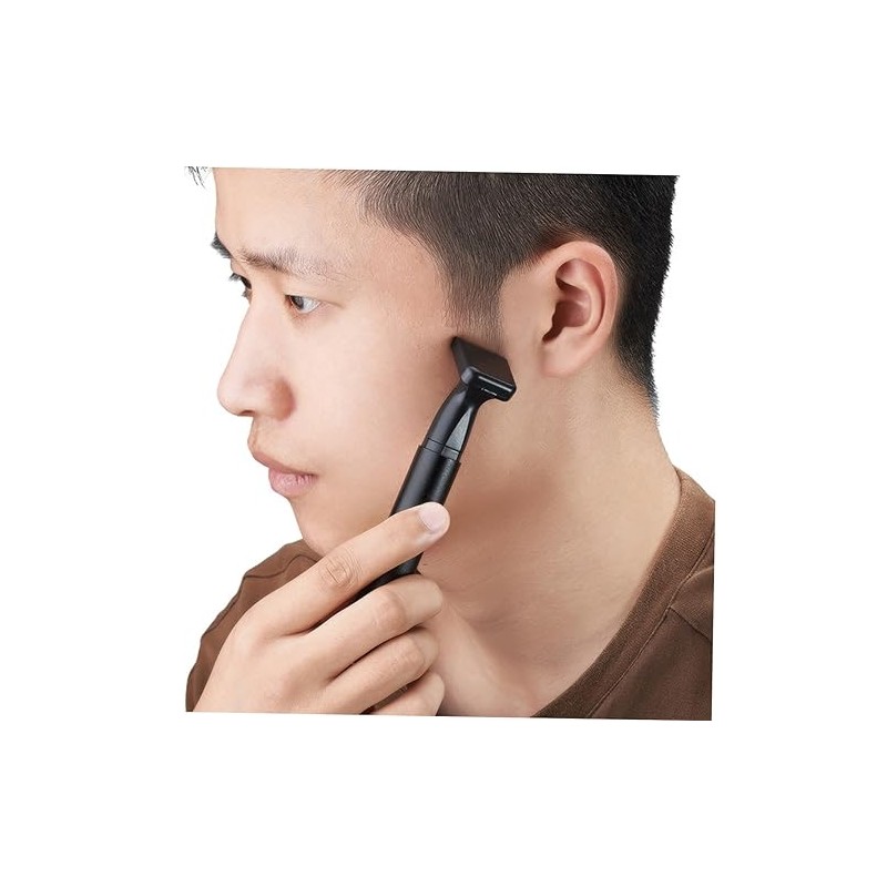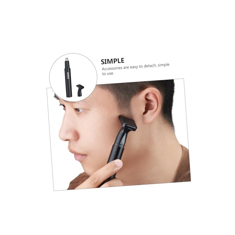 2-in-1 Rechargeable Electric Nose Hair Trimmer Sideburns Remover Set Black Multipurpose Grooming Tool for Men Painless Trimming for Nose Ears and Eyebrows