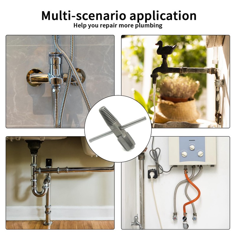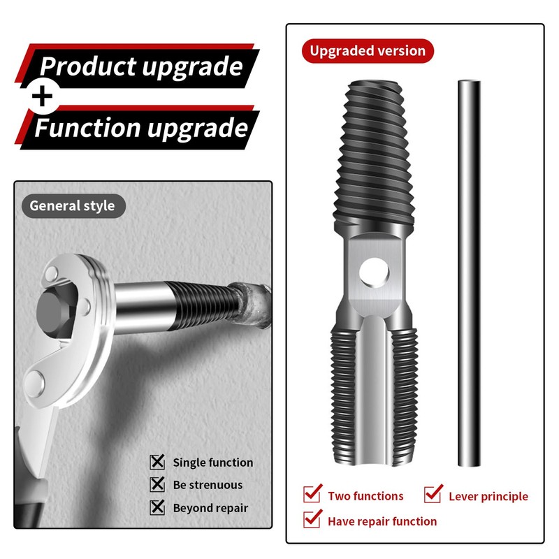 • Easy to use: Choose the right size of the screw extractor according to the diameter of the broken pipe or broken screw, insert the threaded end into the water pipe, insert the weighted rod into the middle hole, turn the wrench counterclockwise and remove the broken pipe or broken screw. Then use the other end of the faucet to repair damaged threads on crank arms.