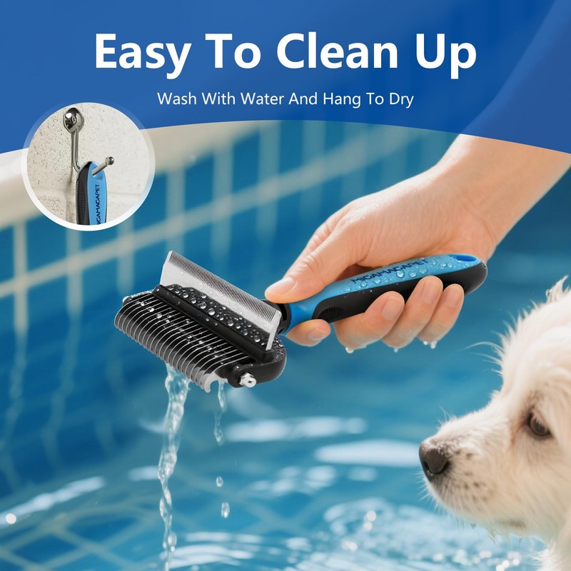 • 【2-in-1 De-shedding Brush】:De-shedding rake can deal with stubborn hair tangles, 2-in-1 dual-head design can effortlessly shed and de-float hairs, can easily detangle the fluffy undercoat of Ragdoll cats as well as combing the double-layer coat of Corgis, as a de-shedding rake, de-shedding brush, easy to remove the pet's hair, no more pesky shedding and fly-away hairs.