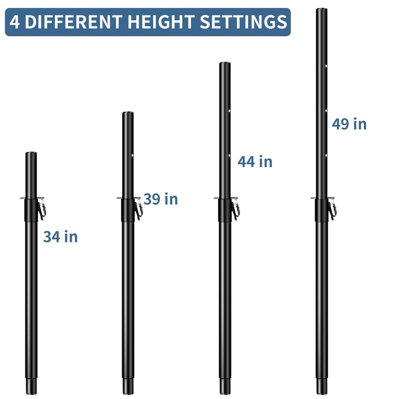· Stable: Height adjusted using a tightening knob and are further reinforced with an included locking pin to ensure safe, reliable speaker support.