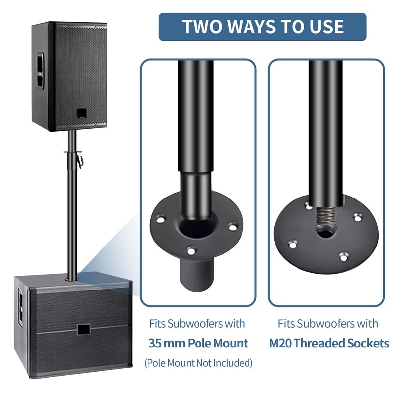 - 2 in 1:Fit most modern speakers with a 35mm pole mount. Fits subwoofers both with M20 threaded sockets and 35mm mount as well.