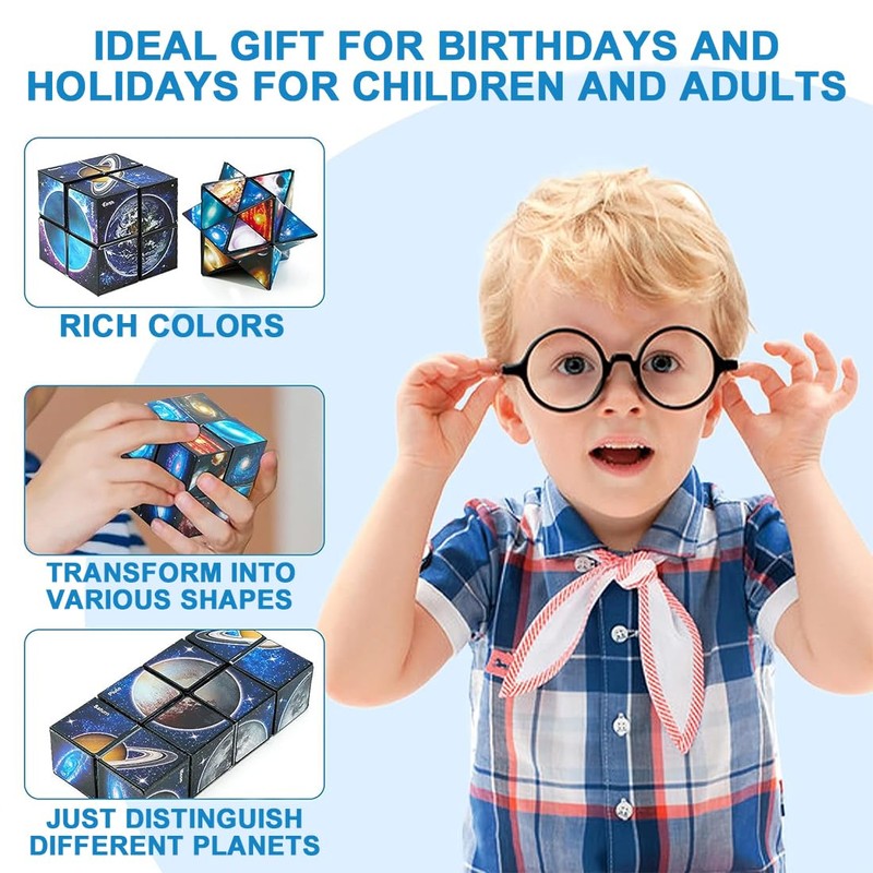 2 in 1 Starry Sky Magic Cube Planet Infinity Cube Transforming Cubes 3D Puzzle Cube, Infinity Cubes Toys for Kids Age 8-12 Birthday Presents for Girls Boys Autism Travel Magic Cube for Children