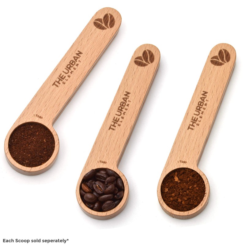 2 in 1 Wooden Coffee Scoop and Bag Clip - 1 Tablespoon Solid Beech Wood Measuring Scoop - Espresso Coffee Bags Sealer - Suitable for Ground Beans, Coffee Beans and Loose Tea - by The Urban Element