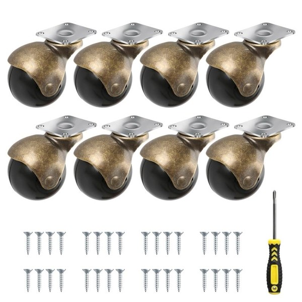 - WIDE APPLICATION SCENARIOS - A set of ball flat casters contains 8 castor wheels, also has 32 screws and 1 screwdriver, easy for you to finish the installation quickly, these casters set of 4 are widely used, both indoor and outdoor, can work properly, usually used for furniture, cabinet, cart and so on.