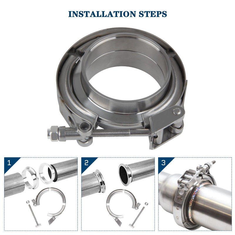 - [PACKAGE LIST] 1 x 2" V-band clamps flange assemblies.