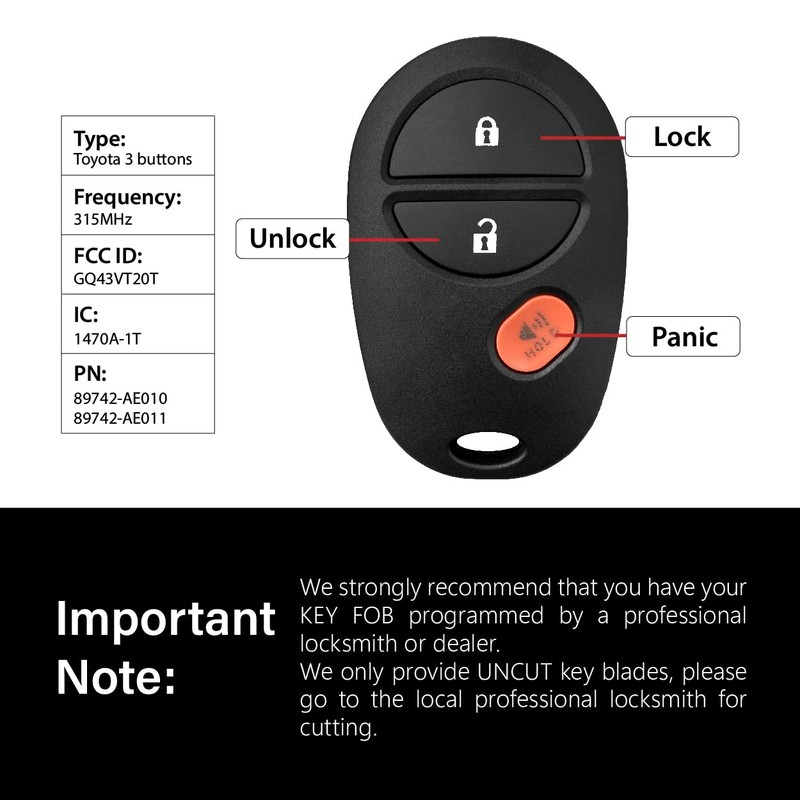 - Compatible Vehicles: Part Number: 89742-AE010 FCC ID: GQ43VT20T. Replacement for 2004 - 2018 Toyota. For full complete list, please check our product description