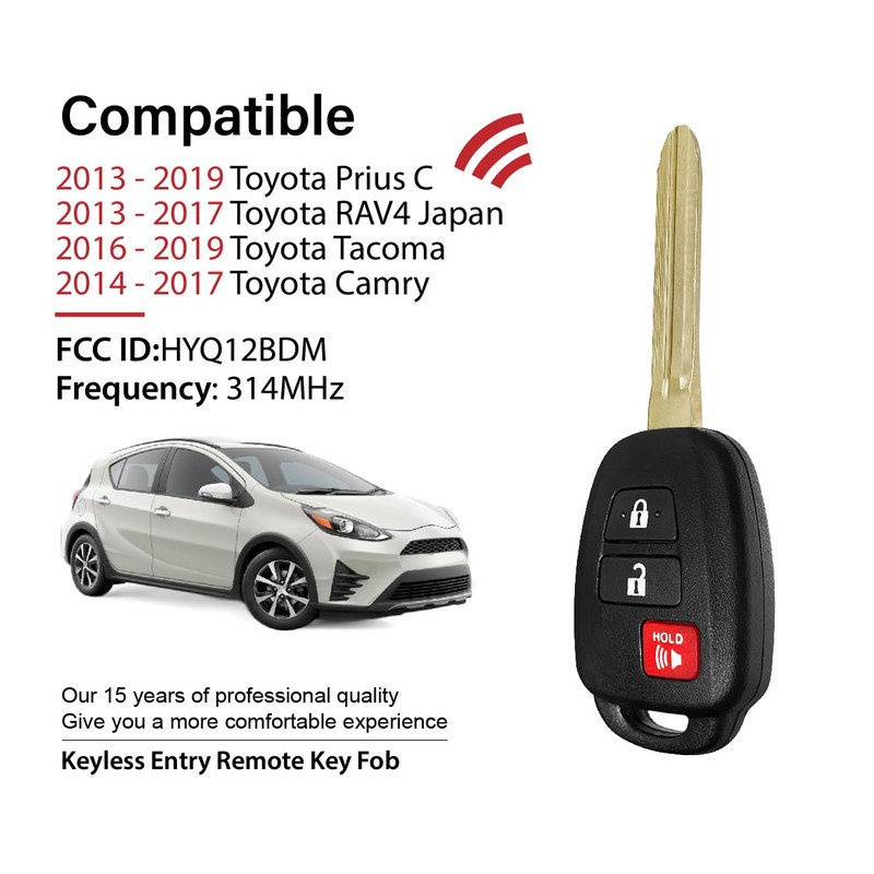 2 Keylessbest Replacement for 2016 2017 2018 2019 Toyota Prius C RAV4 Tacoma Camry Key Fob Remote Control HYQ12BDM 3 Buttons 314MHz