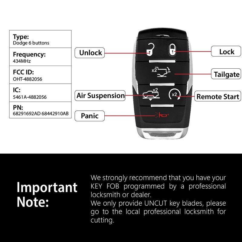 - Compatible Vehicles: Part Number: 68291692AD FCC ID: OHT-4882056. Replacement for 2019 - 2024 Dodge. For full complete list, please check our product description